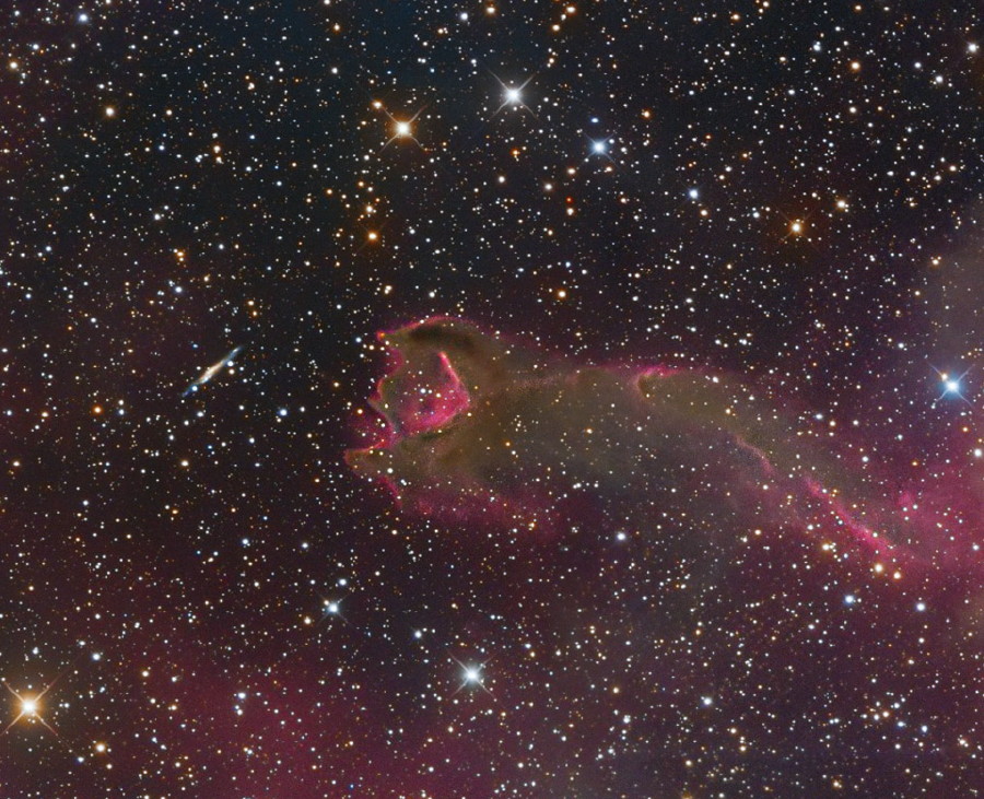 La “urpa” de l’estranya “criatura” de la imatge és un núvol de gas conegut com a glòbul cometari. Aquest glòbul, però, s’ha trencat.