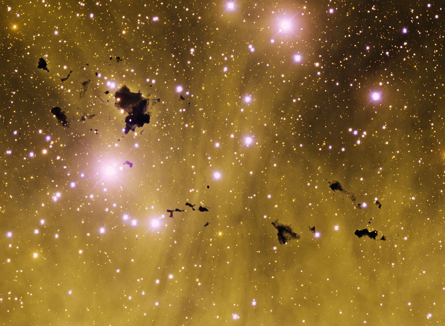 Situats en rics camps d’estrelles i de gas hidrogen brillant, aquests núvols opacs de pols interestel·lar i de gas són tan enormes que podrien generar estrelles.